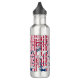 Frasco de água de aço sem manchas, Patriótico, com as inscrições elegantes "Libéria" colocadas simetricamente na garrafa. As inscrições são inutilizadas com o padrão da bandeira nacional da Libéria. O pano de fundo está coberto pela nuvem das palavras "Libéria" escrita nos diferentes formulários, idiomas e fontes do alfabeto. Todas as palavras são coloridas com as cores nacionais utilizadas na bandeira da Libéria. O frasco é acabado com a cor natural de aço inoxidável. A Garrafa de Água da Libéria é o companheiro perfeito para sua água e o presente maravilhoso para qualquer ocasião. © PaísesDoMundo