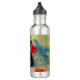 Garrafa de água com um gatinho preto e branco! Esse tuxedo fofo se posou entre as flores vermelhas num cobertor azul. Um presente magnífico para amantes de gatos e entusiastas de arte vitorianos!