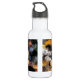 Um design de arte de areia, céu, algas, seixos e água na praia.