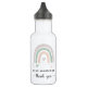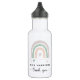 Uma garrafa de água doce moderna para obrigado um professor, amigo, treinador, ajudante, assistente ou outra pessoa especial na sua vida com uma aquarela abstrato de sábio verde, laranja e lavanda arco-íris com corações e "obrigado-te" num roteiro de na moda com baloiços. Personalize com o nome dela.