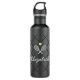 Garrafa de aço inoxidável preto e branco personalizado, com um monograma em tênis, em uma letra elegante e fofa, com um plano de fundo de rede sutil e dois raquetes e bola de tênis cruzados.
