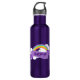 Linda garrafa de água roxa que apresenta um arco-íris alegre e alegre com nuvens brancas divertidas em um bonito fundo violeta. Personalize com um nome para um presente LGBT excelente.