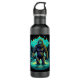 Pé-grande em pé no lago na floresta em preto, azul-esverdeado e amarelo com vibrações retrô arte de IA.