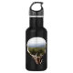 Uma pintura digital da cabeça de Buck com vista a árvores cobertas de colinas e montanhas entre suas galhadas.