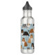 Cães-pastor de Shetland Cute sentam-se e ficam de pé e rollover com casacos de mesa, tricolores, malhas e brancos, com ossos de cão dispersos e padrões de pegadas.