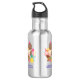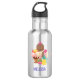 Garrafa de água personalizada ilustrada com o desenho de um sundae de sorvete de 3 furos com borrifadas coloridas. Um cone de sorvete com colheres de chocolate, morango e baunilha. Uma tigela de sorvete neopolita com uma cereja em cima. Morangos e uma fruta de abacaxi sentam ao lado das tigelas. Sumério e doce.