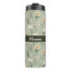 Flores brancas e pastéis em um fundo verde-sábio fazem um tumbler térmico doce e feminino.