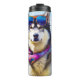 Garrafa Térmica Alaskan Malamute na praia, presente de verão