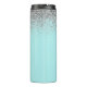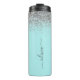 Garrafa Térmica Aqua Azul Teal Prata Glitter Monograma