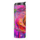Um trabalho de arte de mesmerização e surreal de um rosa de cor arco-íris enfeitado com gotículas de água brilhando. Esta imagem foi uma foto de um rosa que passou por um gerador de ar aer. Radiando com matizes ousados neon e texturas sonhadoras, esta fantástica peça floral evoca magia e emoção - perfeita para amantes de flores, sonhadores, e fãs de arte psicodélica da natureza.