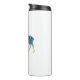 Esta design é o contorno de um alce com um gradiente de cor azul a bege e e a silhueta de um dentro de árvore.
