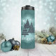 Este tumbler térmico apresenta um belo arranjo de árvores de Natal estilizadas e flocos de neve em palha profunda sobre um fundo de efeito texturizado em tons de azul de relógio. Foi fornecido um texto "Feriados Felizes" opcional e um modelo para adicionar seu nome e/ou outro texto. Procure ID861 a ID864 para ver opções de cores adicionais e outros produtos neste conjunto de design de Natal moderno.