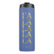 Se você está se perguntando que combinações de cores escolher para sua decoração de Natal e presentes este ano, eu criei coleções de padrões coordenadores para tornar a vida um pouco mais fácil. Este tumbler térmico mostra uma simples mensagem de tipografia de 'Fa La La La' verticalmente no meio em ouro brilhante na cor de fundo de sua escolha. Adicione seu nome usando o modelo fornecido. Procure ID1009 para ver outros produtos e padrões neste esquema de cores.