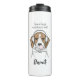 O design apresenta uma ilustração de um beagle relaxante vestindo fones de ouvido e soprando a borbulha rosa. Com seu texto personalizado e sua cor de fundo favorita, ele torna um tumbler térmico giro, engraçado e único.