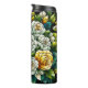 This item has a black background together with yellow roses in a stained glass design.