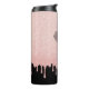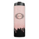 Um elegante e bonito monograma em tumbler térmico sobre um fundo preto e glitter rosa falso. Feminino e elegante. Faz um ótimo presente para um chá de noiva ou uma melhor amiga.