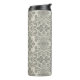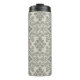 This thermal tumbler features a pattern of floral damask hand-drawn line art in black on beige for a boho look.