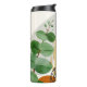 Design de boho botânico com cores verdes, laranja e bege e elementos de aquarela.