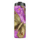 Garrafa Térmica Borboletas Douradas Flores Rosa Nome Personalizado