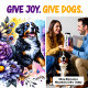 Um alegre cão de montanha Bernese com suas marcas características e uma expressão feliz e aberta está batendo energicamente através de um jardim vibrante de girassóis, púrpuros e outras flores silvestres coloridas. Plasmas de aquarela parecidas e borboletas delicadas melhoram a atmosfera animada e alegre deste delicioso retrato canino.
