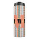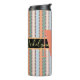 Monograma personalizado Casado stripteado Bridesmaid Thermal Tumbler Comece a festa com esse bonitinho tumbler térmico que é fácil personalizar para sua festa de solteira, noite ou fim de semana das meninas! O estilo moderno apresenta um nome personalizado com cor-de-rosa-pêssego e letras amarelas em um fundo verde, laranja, amarelo e preto. Personalize com duas linhas de texto personalizado e um monograma ou inicial. Todo o texto pode ser editado de acordo com o seu gosto.