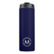 Esta caneca de viagem moderna design apresenta um fundo azul marinho com o seu monograma inicial em tipografia elegante para um olhar simples e na moda, mas profissional.