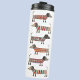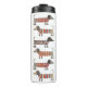 Enchidos bonitos de Dachshund ou cachorros-salsicha em tricô malhado. Perfeito para amantes de cachorros e ambulantes de cães.