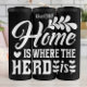 Este gráfico encantador apresenta a frase encantadora "Home Is Where The Herd Is" na tipografia branca estilizada. Os elementos decorativos da literatura adornam a palavra "Lar", enquanto um pequeno símbolo cardíaco e acentos de planta são integrados. Colocado contra um sólido fundo negro, este design capta perfeitamente a essência da família, do pertencimento e de um sentimento aconchegante e amoroso dos animais.