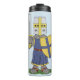 Um belo cavaleiro de cartoon, empunhado em cartas e leme excelente, segura sua espada alta, pronta para defender seu castelo.