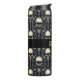 Crânios antigos em um padrão floral tipo damasco azul e marfim cria um lindo, incomum, e baterista térmico gótico. Personalize com seu nome em uma banda negra no meio.
