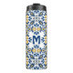 💛 💙 Belos Azulejos amarelos, brancos e azuis, 10º padrão inspirado pelo famoso trabalho de azulejo português, Azulejos. Perfeito como decoração domiciliar ou como presente para a pessoa da moda. Tumbler térmico com Azulejos incríveis. Personalize com a sua inicial.