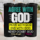 Este design gráfico apresenta uma série de poderosas afirmações espirituais contra um fundo de cinza de luz. "AGREE WITH" está em negrito, seguido de "GOD" em letras grandes brancas com acentos de linha horizontal. Um fundo retangular amarelo vibrante destaca "MOVE WITH DEUD" e "END WITH DEUD", com "NUNCA DÚVIDAS DEUS" em branco no fundo, concluindo com um estilizado "Amen" em um guião magenta fluente.