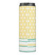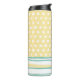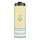 Lindo Copo Térmico feito em azul turquesa, amarelo e branco, com pontos e listras horizontais caprichosos. Personalize a monograma de uma letra na frente do copo. Ótima ideia de presente para ela.
