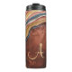 Personalize este cilindro térmico para uso durante todo o ano. O design apresenta uma ilustração aquarela de uma fatia de geodo agado em tons de cobre, azul e ouro. O modelo está configurado para que você adicione seu início ao geode. Navegue na nossa loja para coordenar capa de telefone e acessórios de viagem no geode agate.