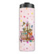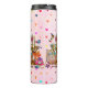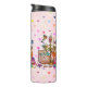 All cute pastel coquette with a tea party setting, tea cups, pastries, candle drum, bird, cat, butterfly, bee, dragonfly, cute things and etc