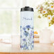 Passe no estilo! Nosso Monogrammed Blue Watercolor Wildflower Meadow Thermal Tumbler ostenta um elegante campo de flores azuis — um toque chic para os entusiastas de flores em qualquer lugar.