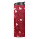 Padrão moderno e fofo de corações cor-de-rosa sobre fundo de aquarela vermelha