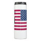 Stay hydrated with this high-performance thermal tumbler featuring a wrap-around USA soccer design. This insulated drinkware is built to keep your beverages at the ideal temperature for hours, whether you're on the sidelines or commuting. The design is personalized with a custom name and number, utilizing a specialized white outline to ensure the text stands out against the red and white stripes.