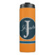 Modern custom orange Light greay ocean blue Monogram Elegant thermal tumbler.