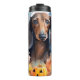 Garrafa Térmica Dachshund Halloween Com Pumpkins Assustado