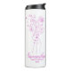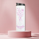 Copo térmico elegante com um delicado desenho de linha rosa de uma mão segurando flores silvestres. Personalizado com o nome da dama de honra, este design elegante é um presente memorável para festas de despedida de solteira, brunch de noiva ou mimosas no dia do casamento. Feminino, moderno e totalmente reutilizável.