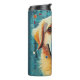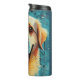 Esta ilustração feliz do Retriever de Ouros é um design excelente para amantes de cães e proprietários de Ouros de Retriever. Ele tem uma cor de fundo azul-esverdeada e se adequa à maioria das combinações de cores.