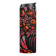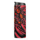 Uma caneca de viagem de aço inoxidável com um vibrante design floral vermelho e preto, perfeito para planejadores em qualquer lugar.