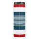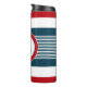 Design de temas náuticos com decoração em forma de monograma em forma redonda, sobre fundo listrado azul, branco e vermelho