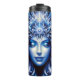 Tumbler Térmico Personalizado - Deusa Celestial Blue Head Janeiro - Este belo conteúdo generativo e fluente Design digital mostra um Chefe de uma bela Mulher com olhos fechados e cabelos longos fluidos ao fundo é o divino Universo celeste. As principais cores nesta peça de Arte são diferentes tons de azul, branco. Isso faz um belo presente para você e para suas mulheres amigas. Você pode personalizar o Texto - VISÃO interna - para seu gosto ou excluí-lo.