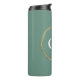 Monograma personalizável com falso quadro de ouro no elegante Tumbler térmico "Ocean Teal": o design clássico atende ao estilo e à funcionalidade modernos em nossa coleção Elegance Muted. Este simples e na moda, com um nome personalizável em uma fonte ousada e moderna, enquadrado por um círculo de ouro falso, é o presente perfeito para você ou para um ente querido. Fiquem quentes e saboreiem suas bebidas em qualquer lugar. O Teal Oceânico é uma sombra legal e refrescante, lembrando as profundezas serenas do mar. É uma mistura de tons azuis e verdes profundos, oferecendo um senso de calma e profundidade.