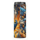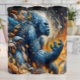 sua ilustração estilizada e fantástica apresenta uma figura majestosa de gorila azul interligada com elementos decorativos fluentes em tons de azul, laranja e creme. O gorila parece poderoso e místico, com uma luz suave e brilhante emanando por trás, sugerindo um cenário luar ou eetéreo. O estilo geral é intrincado e artístico, misturando formas animais e abstrato.
