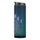 Um atraente design celeste apresenta uma ilustração circular das fases da lua e da árvore da vida num fundo de um céu azul estrelado e galáctico.