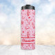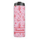 Tumbler térmico de solteira costeira rosa e vermelha com cada nome de sua dama de honra. Design com ilustrações de pranchas, botas de cowboy, chapéus, ferraduras, búfalos e muito mais.
