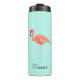 Uma garrafa de água personalizada com um flamingo pintado à mão. Adicione facilmente seu nome com o botão personalizar.